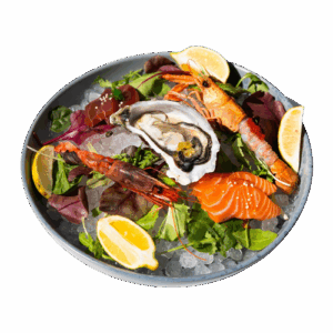 Patate al forno, patate fritte*, verdure grigliate e insalata